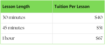 Lessons are billed monthly, in advance. Tuition is due on/by the first lesson of the month